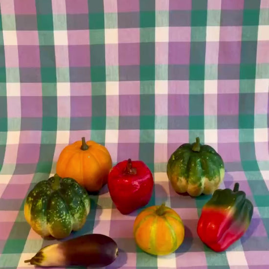 Add a nostalgic pop of color to your kitchen or dining table with this delightful set of vintage faux vegetables. Featuring seven unique pieces including pumpkin, eggplant, capsicum, red apple, and more this collection is perfect for centerpieces, or vintage-inspired vignettes.