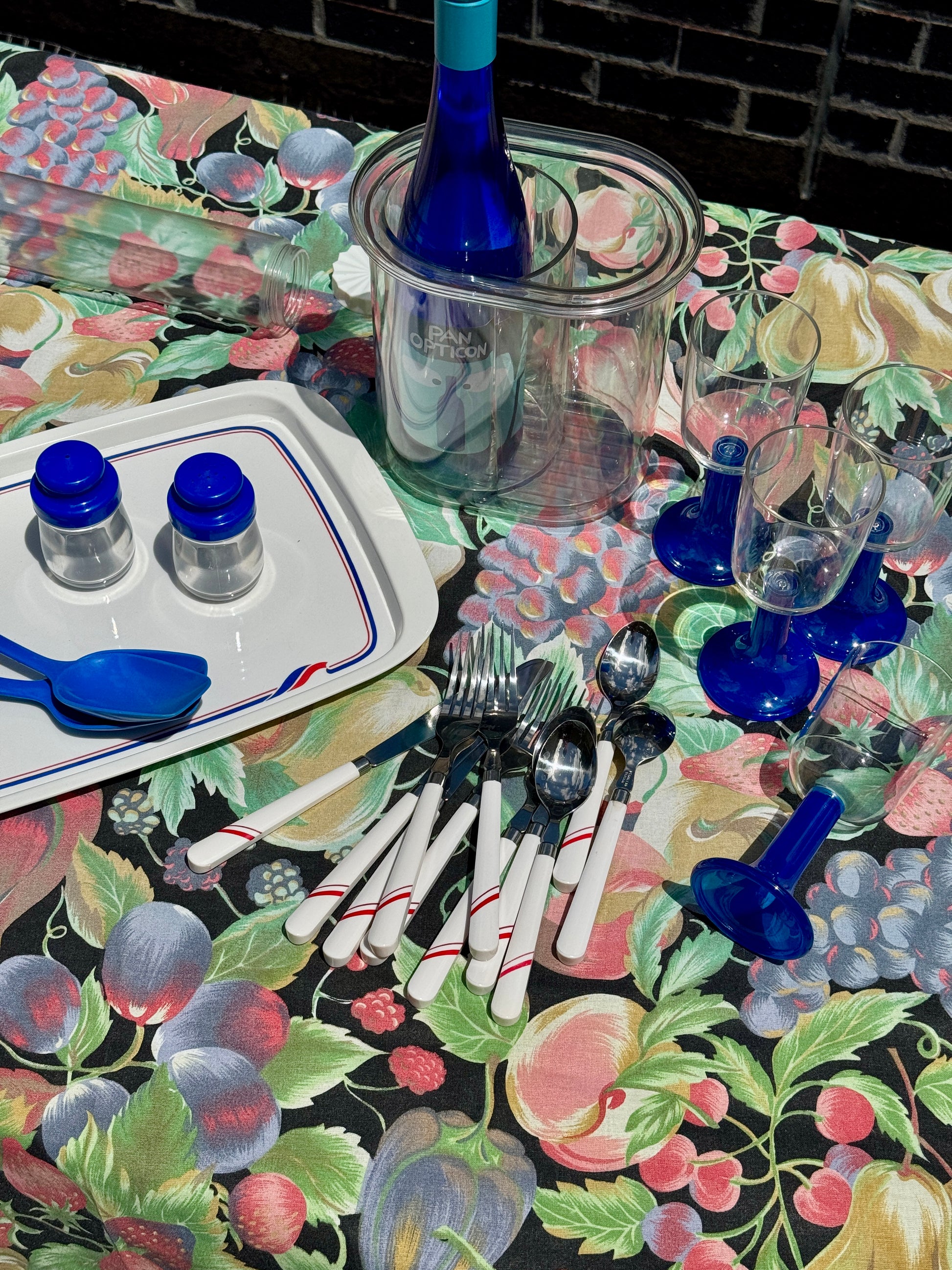 A playful blue picnic and entertaining set made for sunny days and chilled drinks.