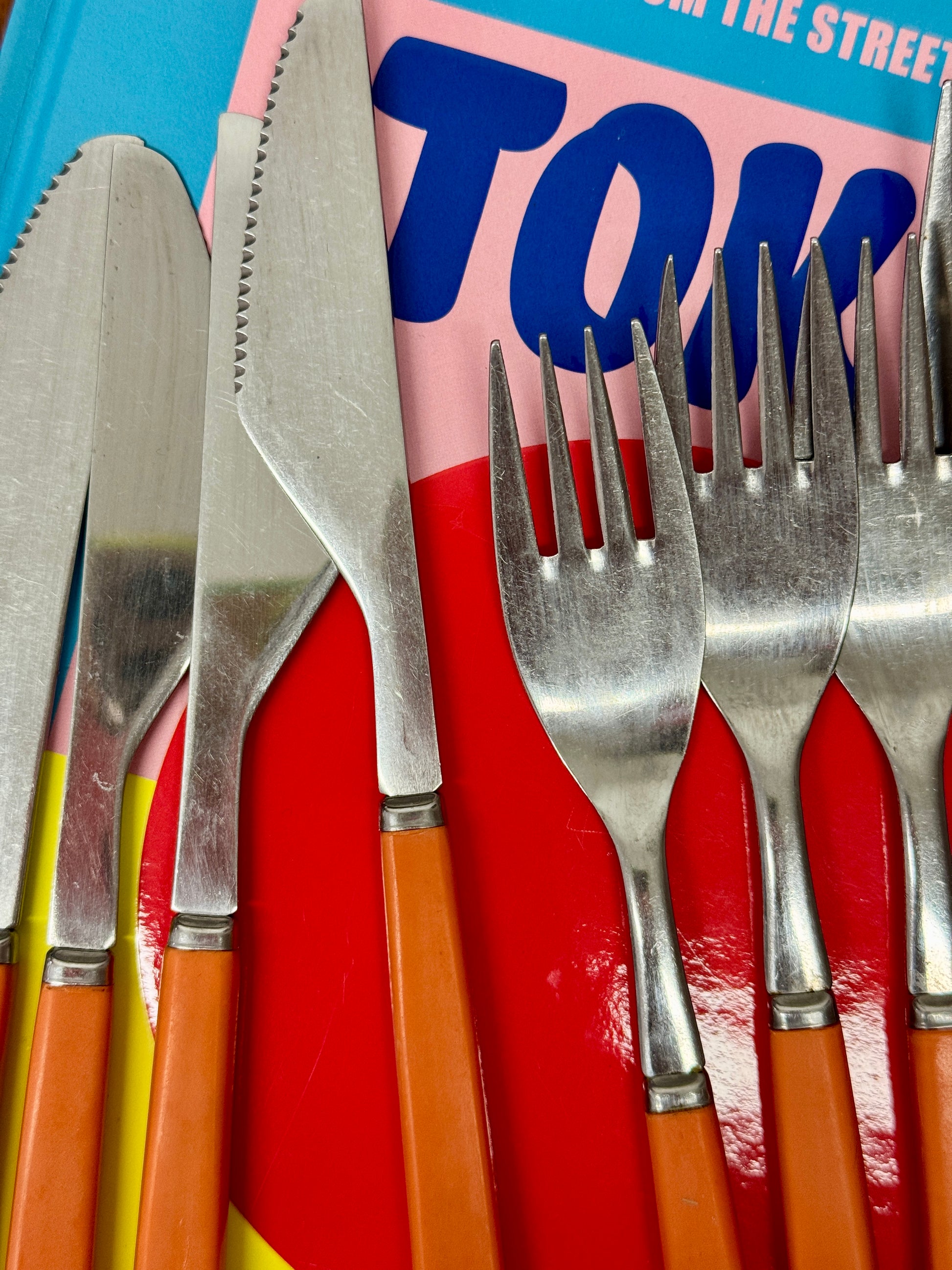 Vintage Orange Handle Knife & Fork Set – 8 Piece