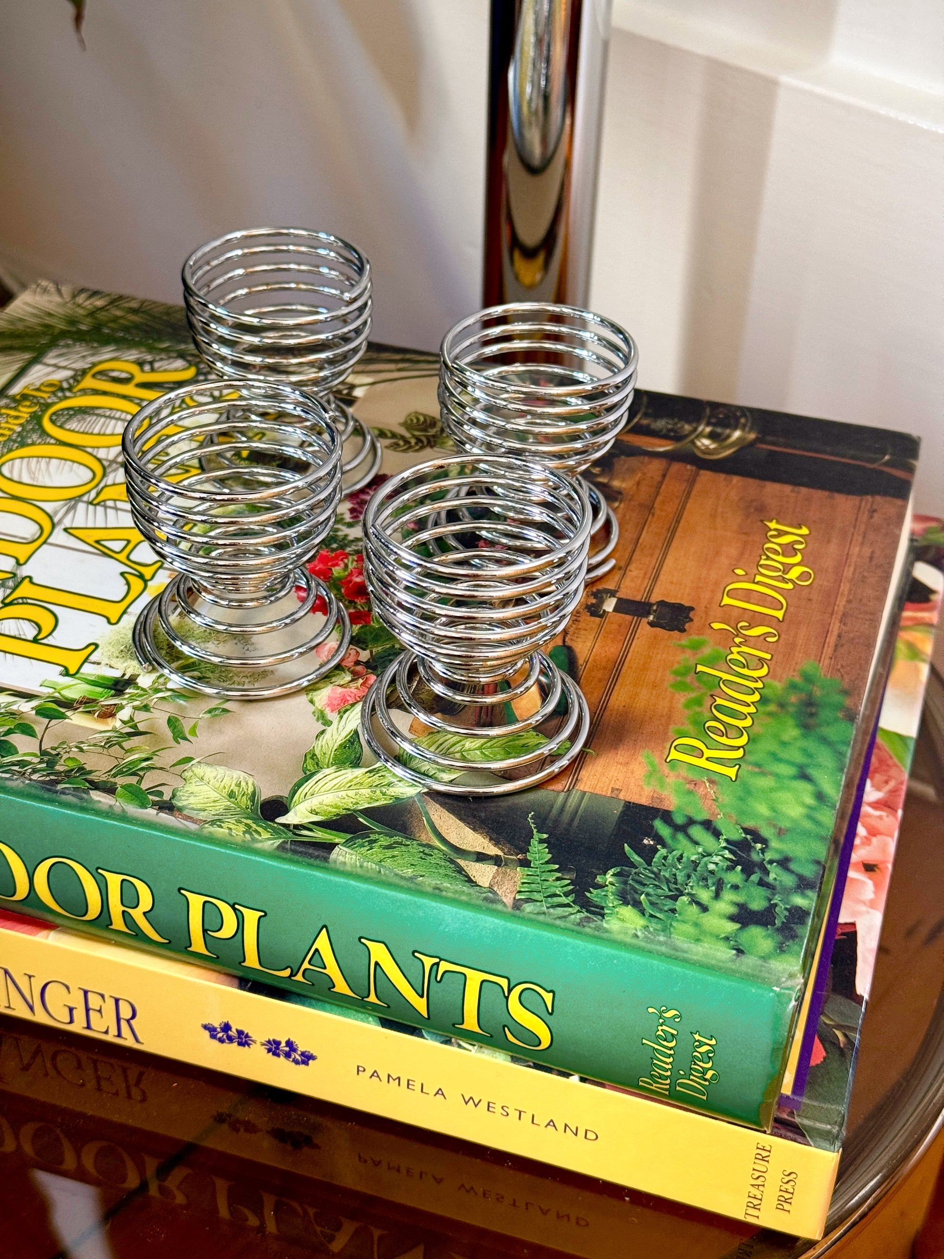 Vintage Chrome Spiral Egg Cups – Set of 4 Mid Century Style