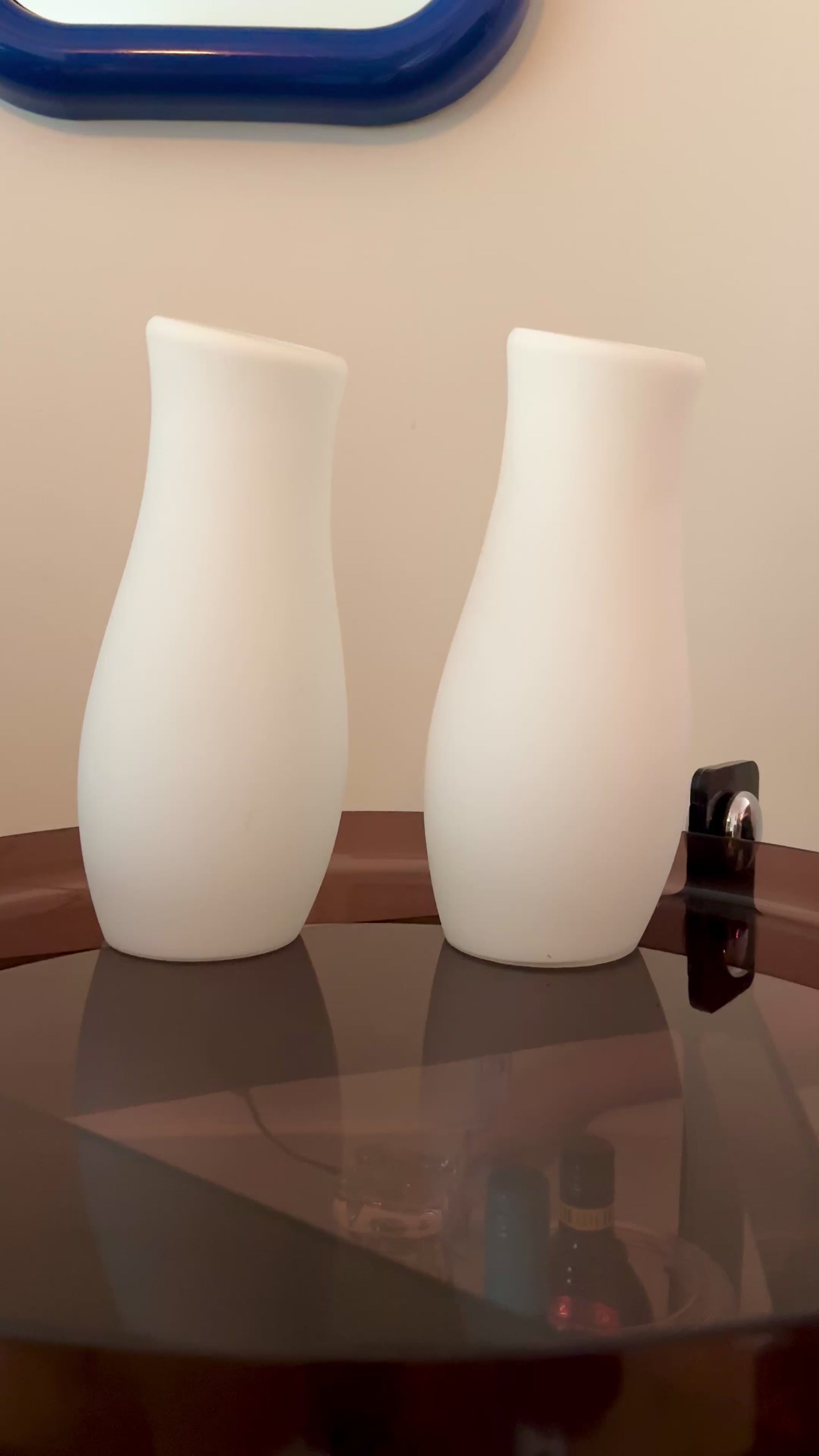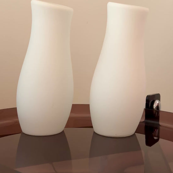 Rare extra-extra-large size of the iconic Mylonit lamp series by IKEA, standing an impressive 42 cm tall. These sculptural lamps feature a soft matte white glass finish with an organic, curved silhouette that diffuses light beautifully, creating a warm ambient glow.