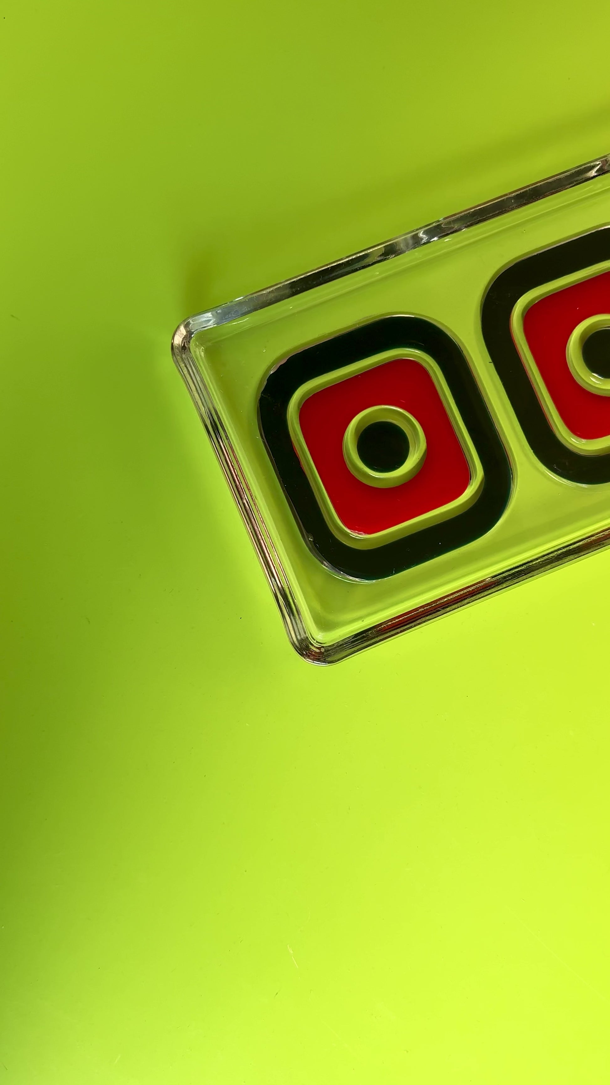 Rare Vintage Walter Kristallglas Tray – Red & Navy Geometric Mid-Century Design