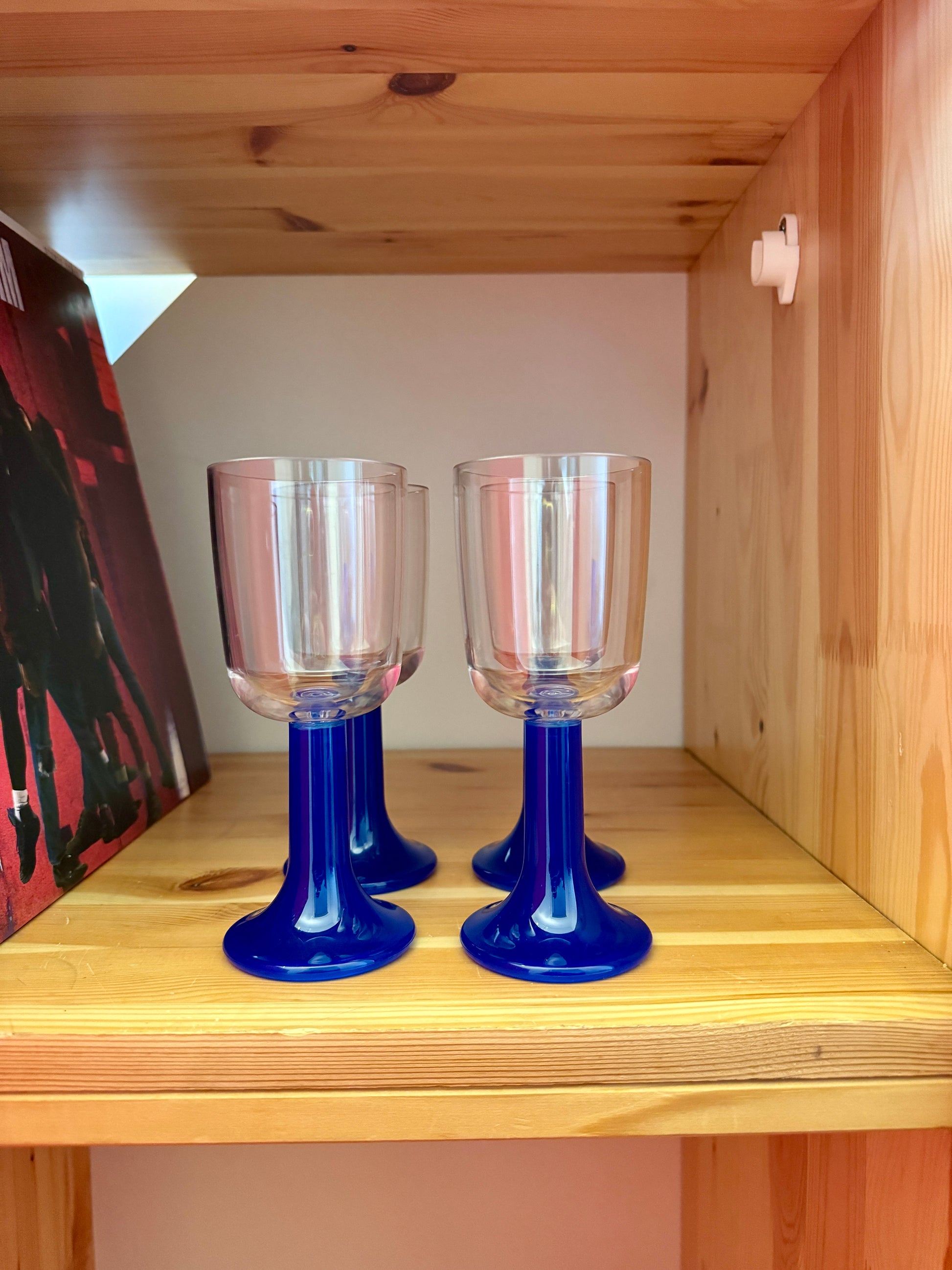 Set of 4 Vintage Blue Stem Plastic Wine Glasses