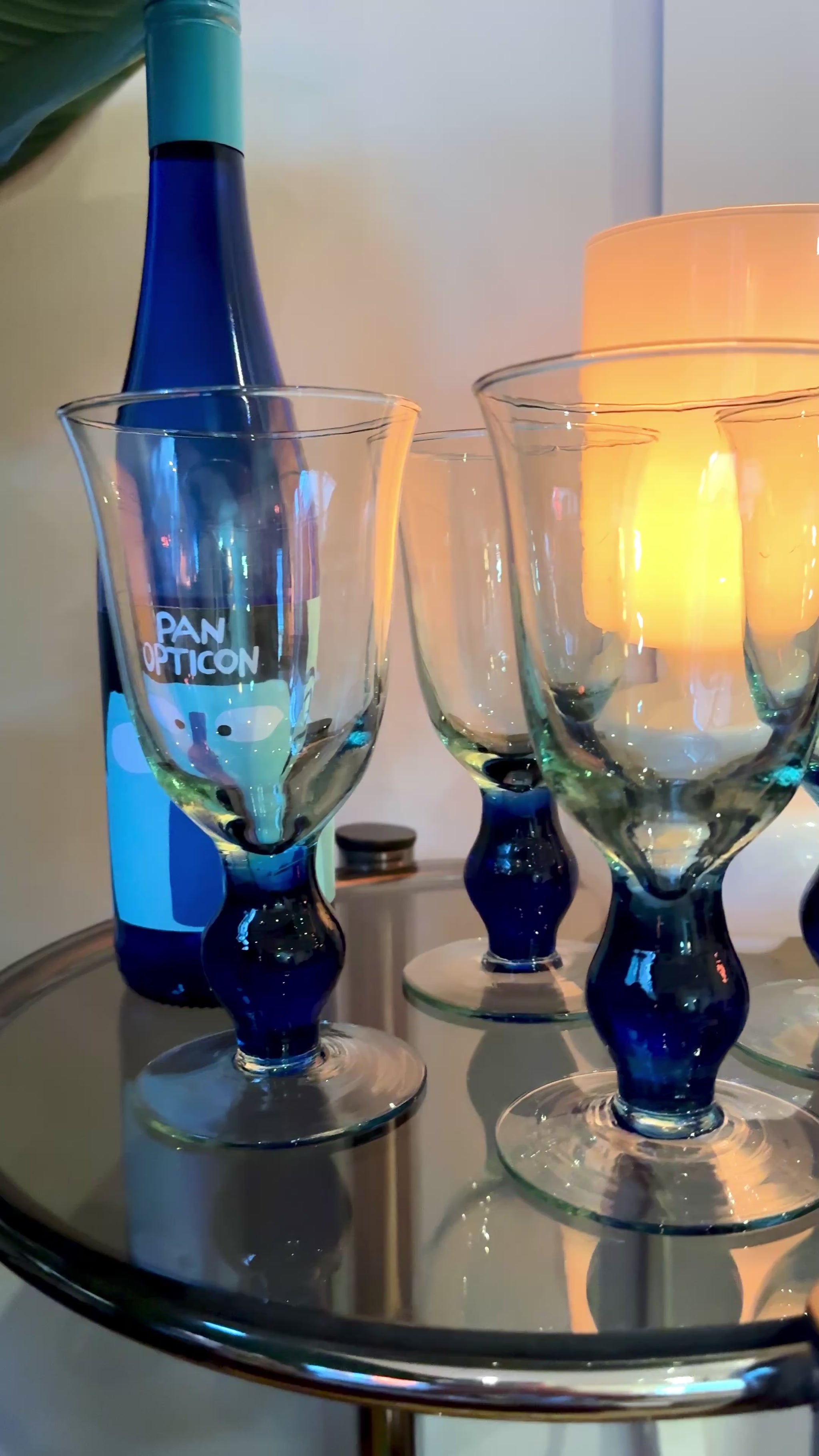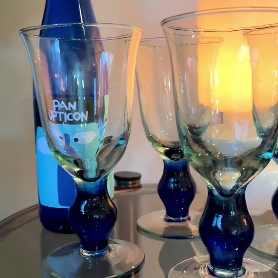 Set of 4 Vintage Wine Glasses – Blue Base, Sculptural Stem