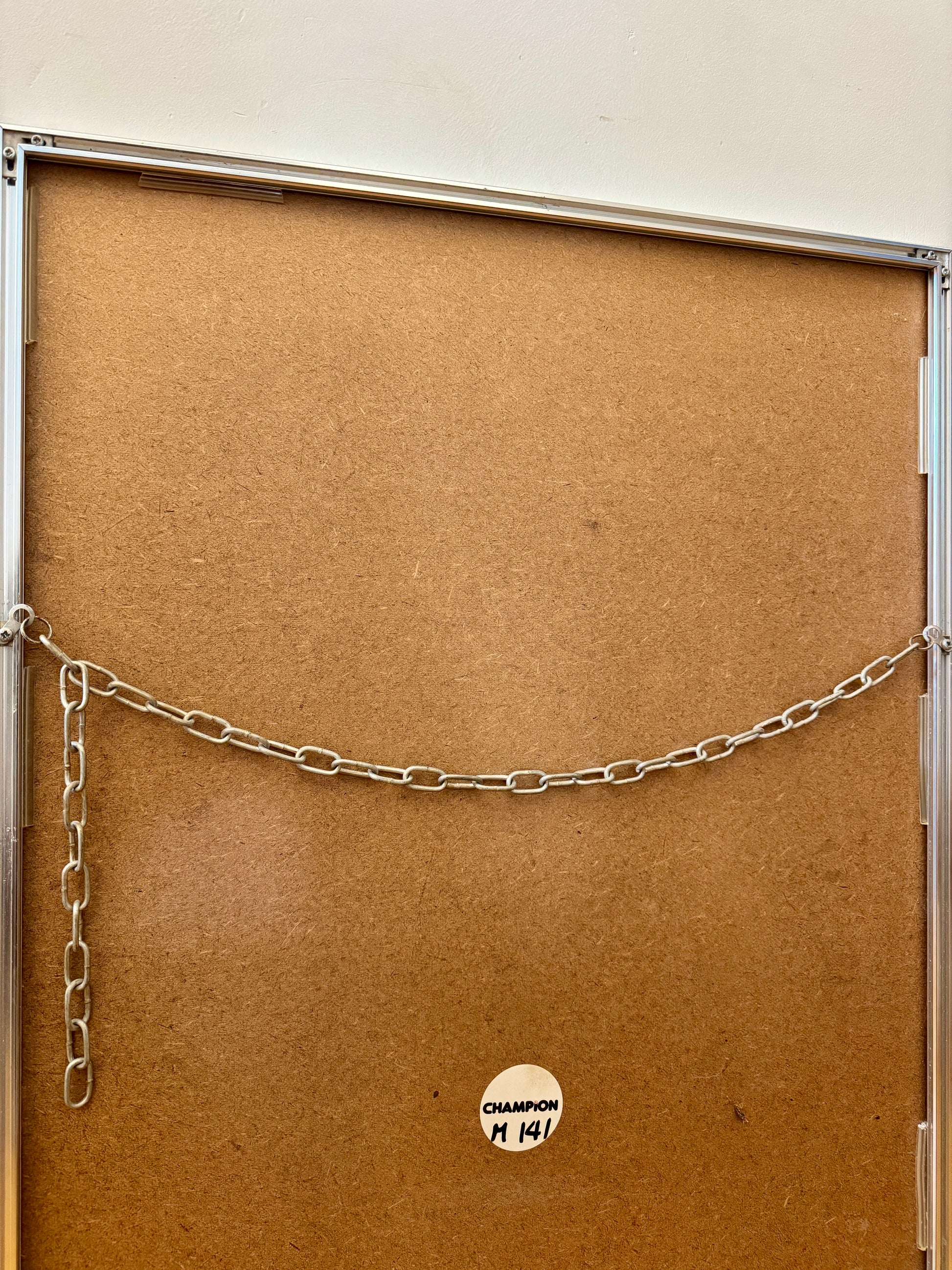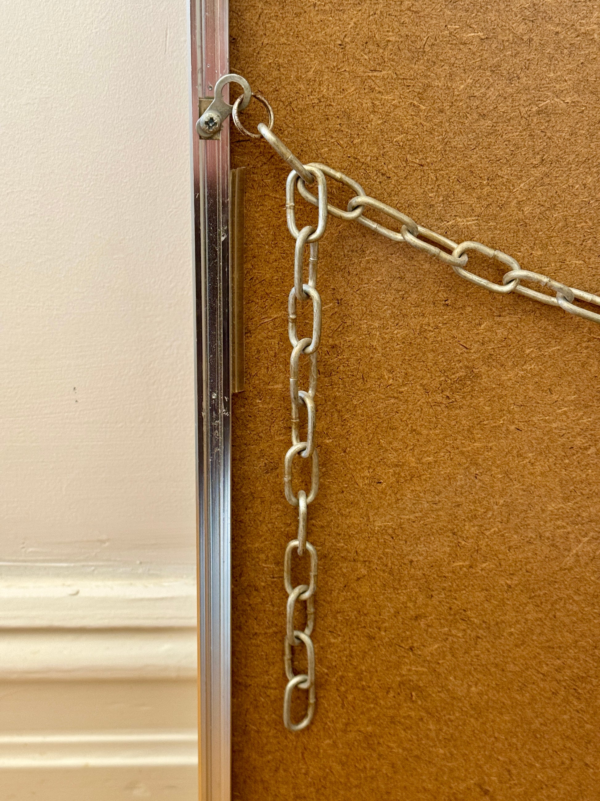 • Materials: Mirrored glass with graphic border; aluminium-look frame