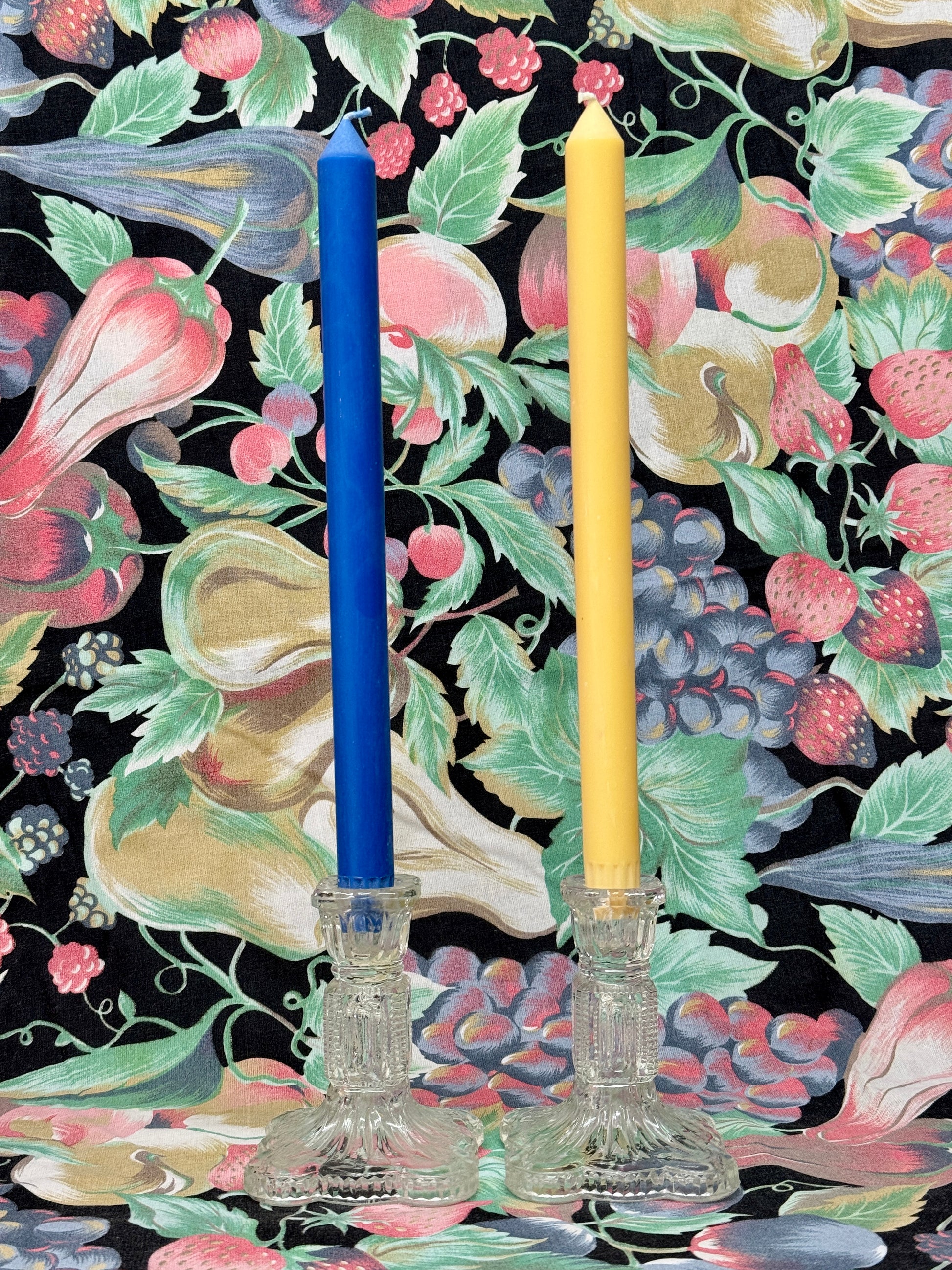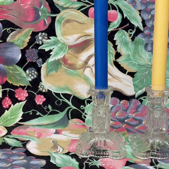 Elegant and timeless, this matching pair of vintage pressed glass candlestick holders features classic fluted detailing and scalloped bases. A beautiful addition to any table setting, mantle, or shelf, perfect for mixing into vintage, cottagecore, or eclectic decor.