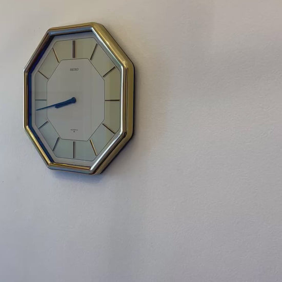 Elegant octagon-shaped Seiko wall clock with a gold-tone frame and minimalist face. Silent quartz movement (no ticking), making it perfect for bedrooms, studies, or quiet spaces. Marked Japan, showcasing Seiko’s renowned craftsmanship. In great vintage condition and ready to hang. ✨🕰️