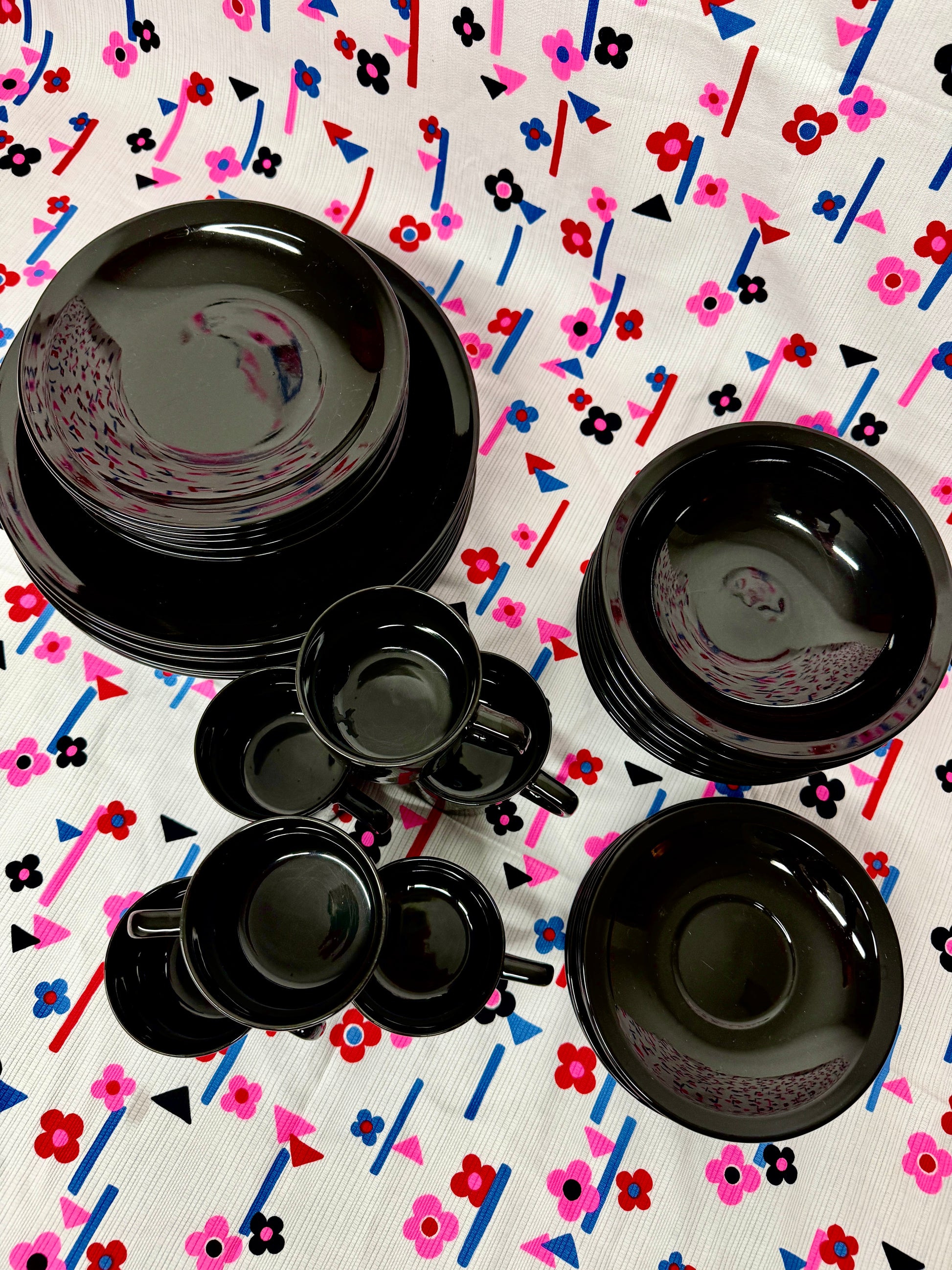 Complete vintage dinnerware set by Ten Strawberry Street in classic black, perfect for entertaining or everyday use. This set includes: